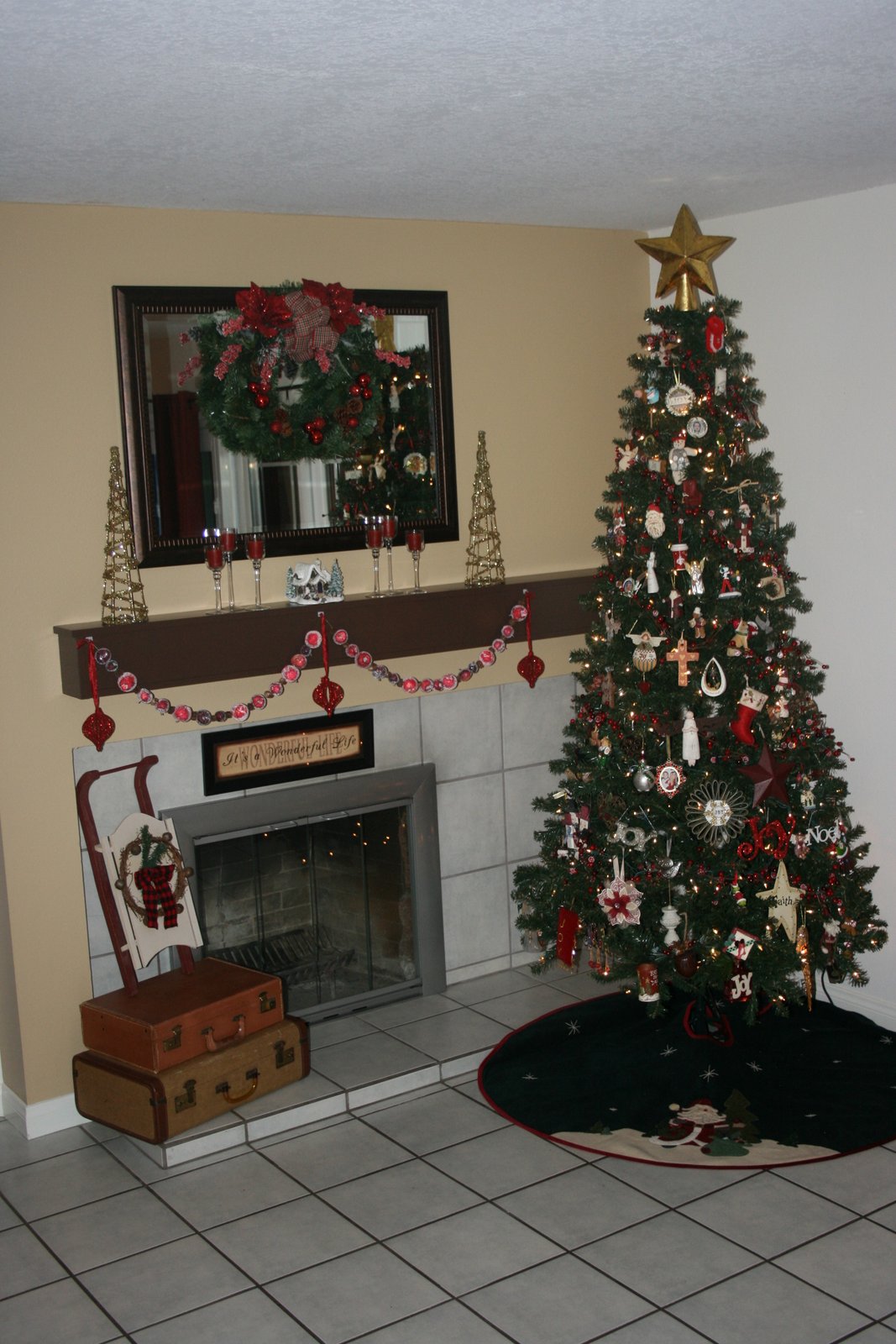 This is the living room where we put the tree near the fire place. The tree is decorated with 23 years of family ornaments that we have collected over the years. I'm so grateful to Kevin for building this mantle over the fireplace so I could decorate it for Christmas.